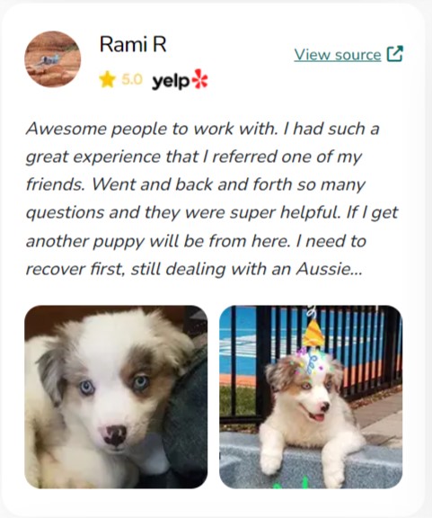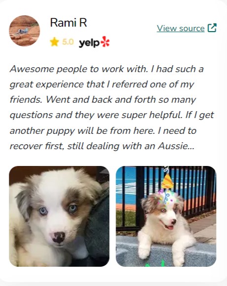"I can't recommend this website enough for anyone looking to bring a new furry family member into their home. The website's commitment to connecting loving homes with healthy, well-cared-for puppies is truly commendable. My experience with this website was nothing short of amazing, and I am so grateful for the new addition to our family."